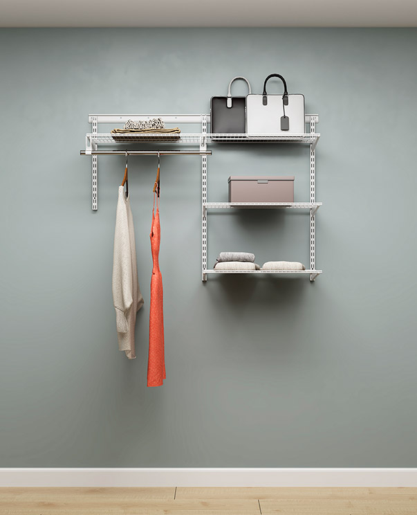 В комплект входят несущие рельсы и навесные направляющие, полки, штанги, аксессуары, крепежные элементы. Можно докупить множество дополнительных компонентов для гардеробной системы.