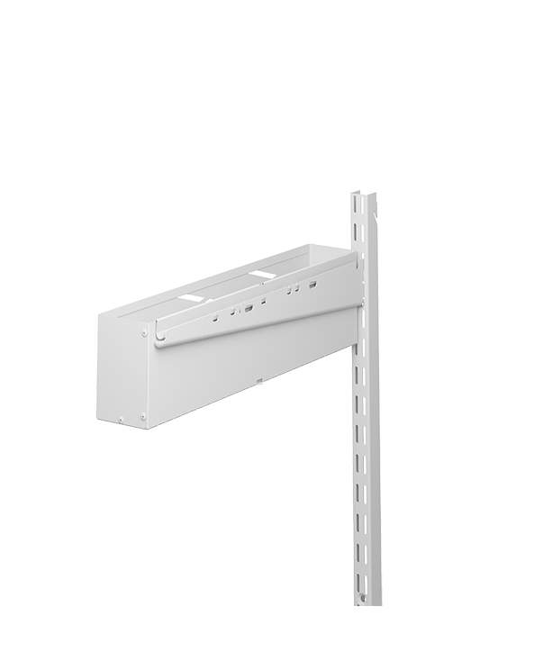 Она крепится на стойку, с помощью специального переходника, либо на внешнюю боковую часть кронштейна в гардеробной системе ПРАКТИК Home.
