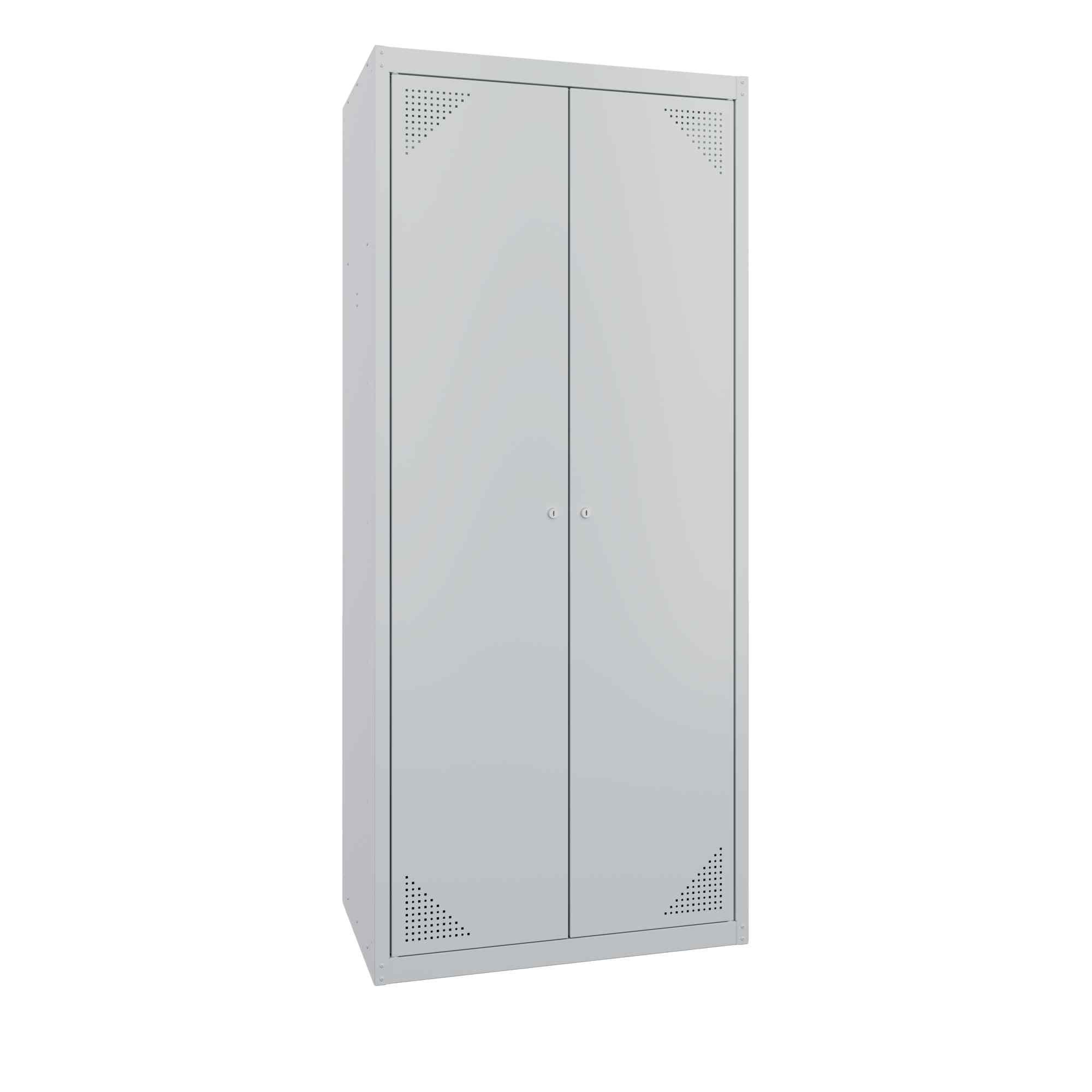 Двери шкафа сверху и снизу имеют вентиляционные отверстия-жалюзи, дверца запирается на замки повышенной надежности.