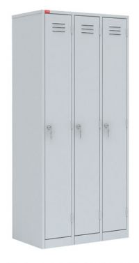 Шкаф металлический разборный, трехсекционный, для хранения сменной одежды.