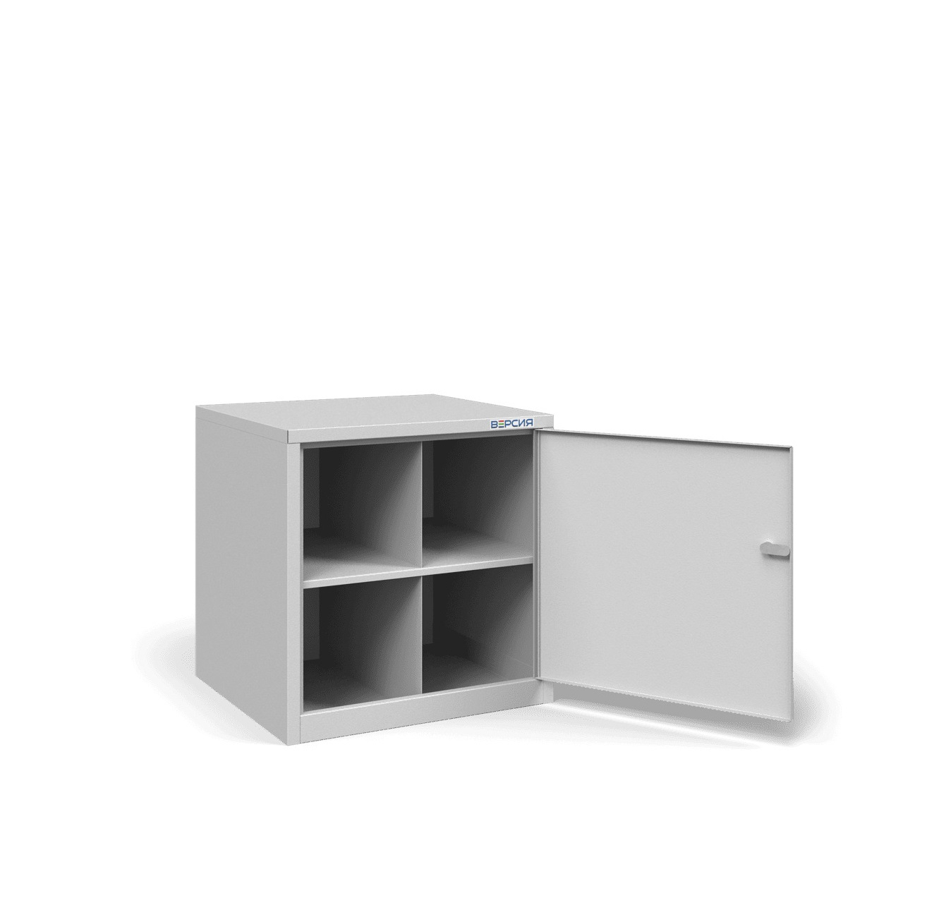 Модель представляет собой закрытую версию аналога без дверей (артикул 036082). По запросу возможна индивидуализация: изменение габаритов, замена замка, а также выбор цвета корпуса из стандартной палитры.