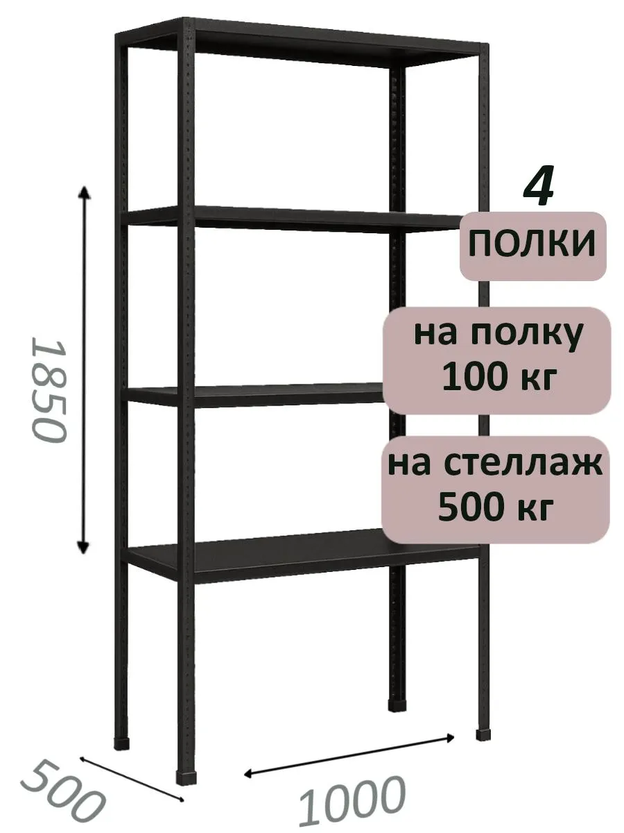 Стеллаж MS Standart 185х100х50, 4 полки, чёрный