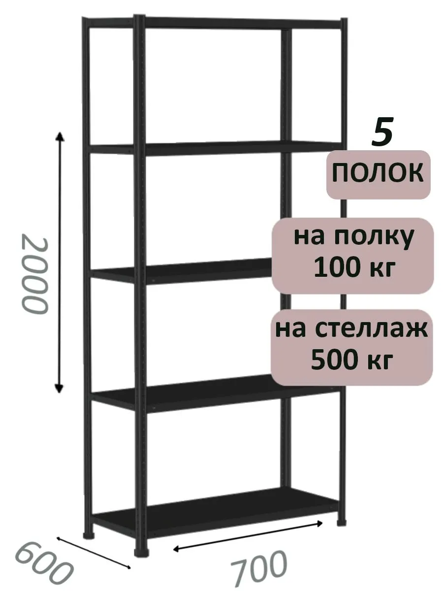 Стеллаж MS Standart 200х70х60, 5 полок, чёрный
