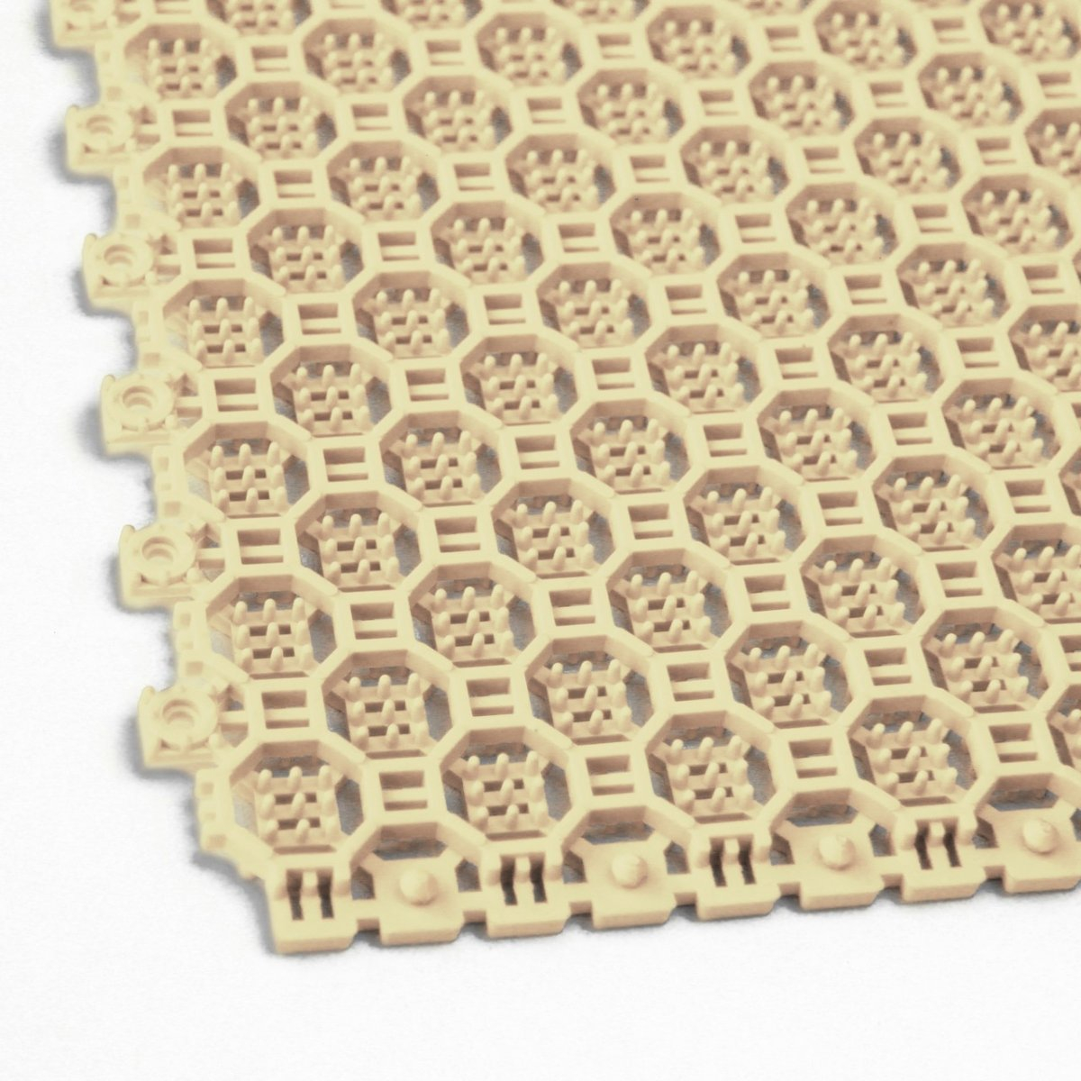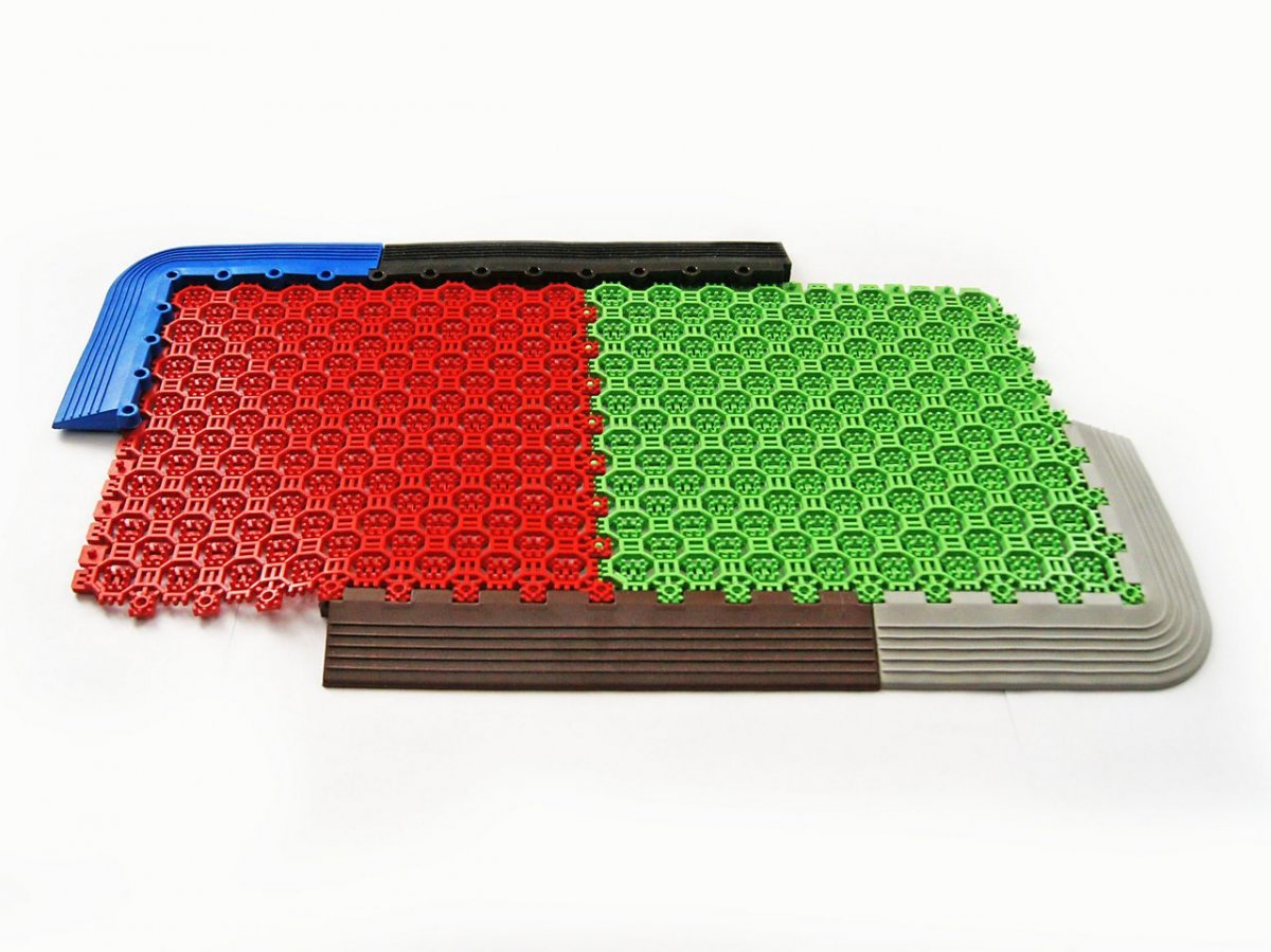 Крупноячеистые коврики, расположенные перед входной группой, счищают крупные комья снега и грязи. Важными характеристиками таких покрытий является степень грязезадержания и возможность быстрой очистки для повторного использования.