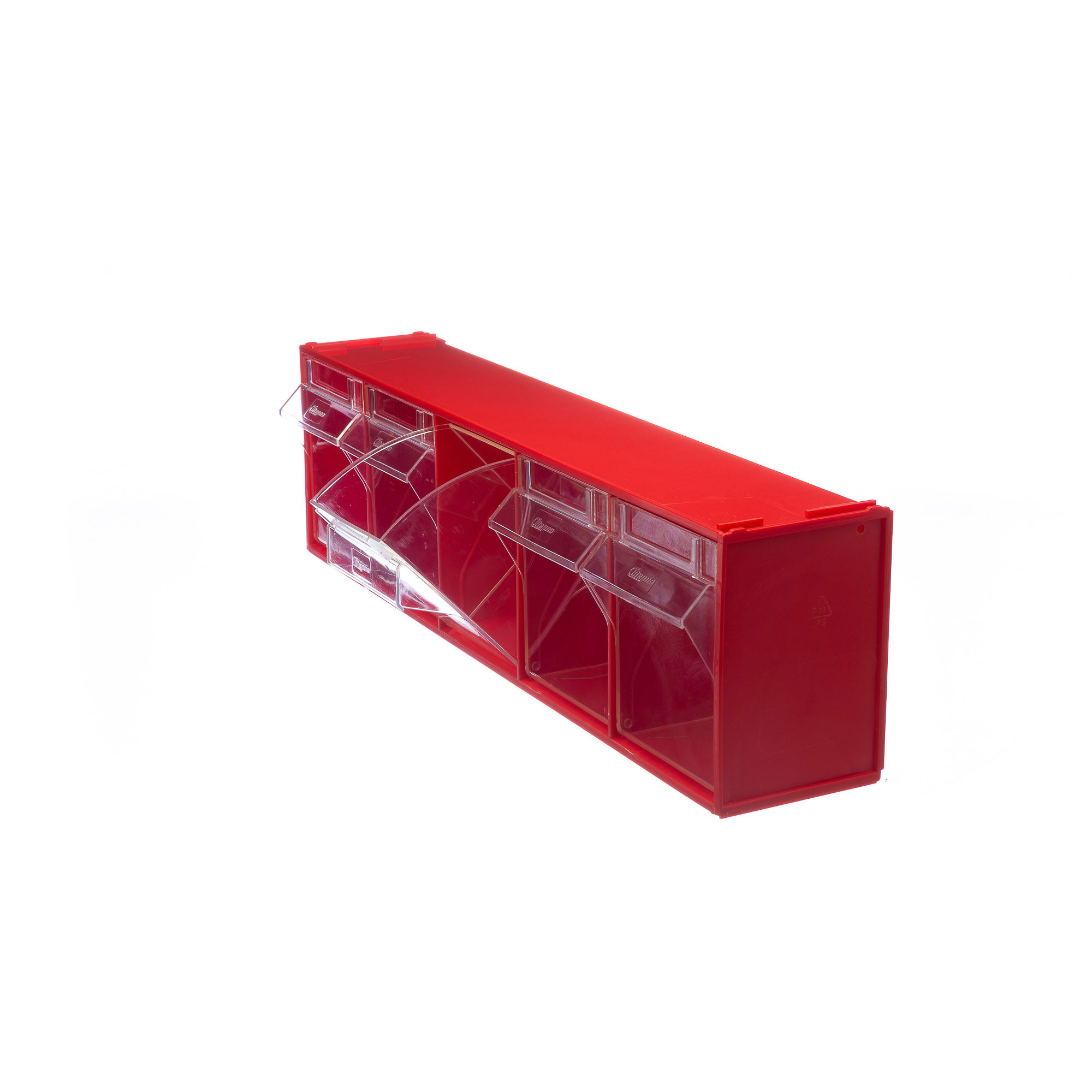 Короб откидной F-600-5, 600х135х164мм, 5 ячеек, красный, прозрачный