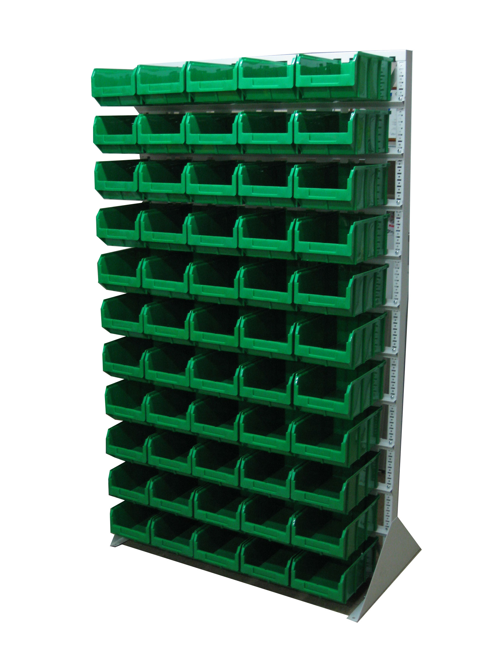 Стойка 1150х2000 Стелла-техник В1-00-00-11 односторонняя служит для эффективной организации рабочего пространства склада, магазина, гаража, мастерской. Используется для систематизации и хранения мелких подручных приспособлений и инструментов. Опоры стойки 1150х2000 имеют возможность крепления к полу, что обеспечивает высокую устойчивость всей конструкции. Комплектация: Стойка под пластиковые ящики 1150х2000мм., без опоры, серия К; Опора стойки односторонняя комплект (правая + левая + крепеж) серия К; Держатель для стойки 1150мм., серый , распределенная нагрузка до 40кг. на ряд, серия К - 11 шт.; Пластиковый ящик серии V-3, размером 341х207х143мм. - 55 шт.; Упаковка. Технические характеристики: Тип ящиков ящики V-3, высота 2000мм., ширина 1150мм. Преимущества: Хороший визуальный обзор содержимого. Каждый ящик оснащен специальным кармашком, позволяющим вставить этикетку для индикации содержимого. Конструкция стойки позволяет легко извлекать нужный ящик и так же легко устанавливать его на место. Быстрая сборка; Высокая прочность. Габариты: 1150х330х2000мм.; вес 56кг.