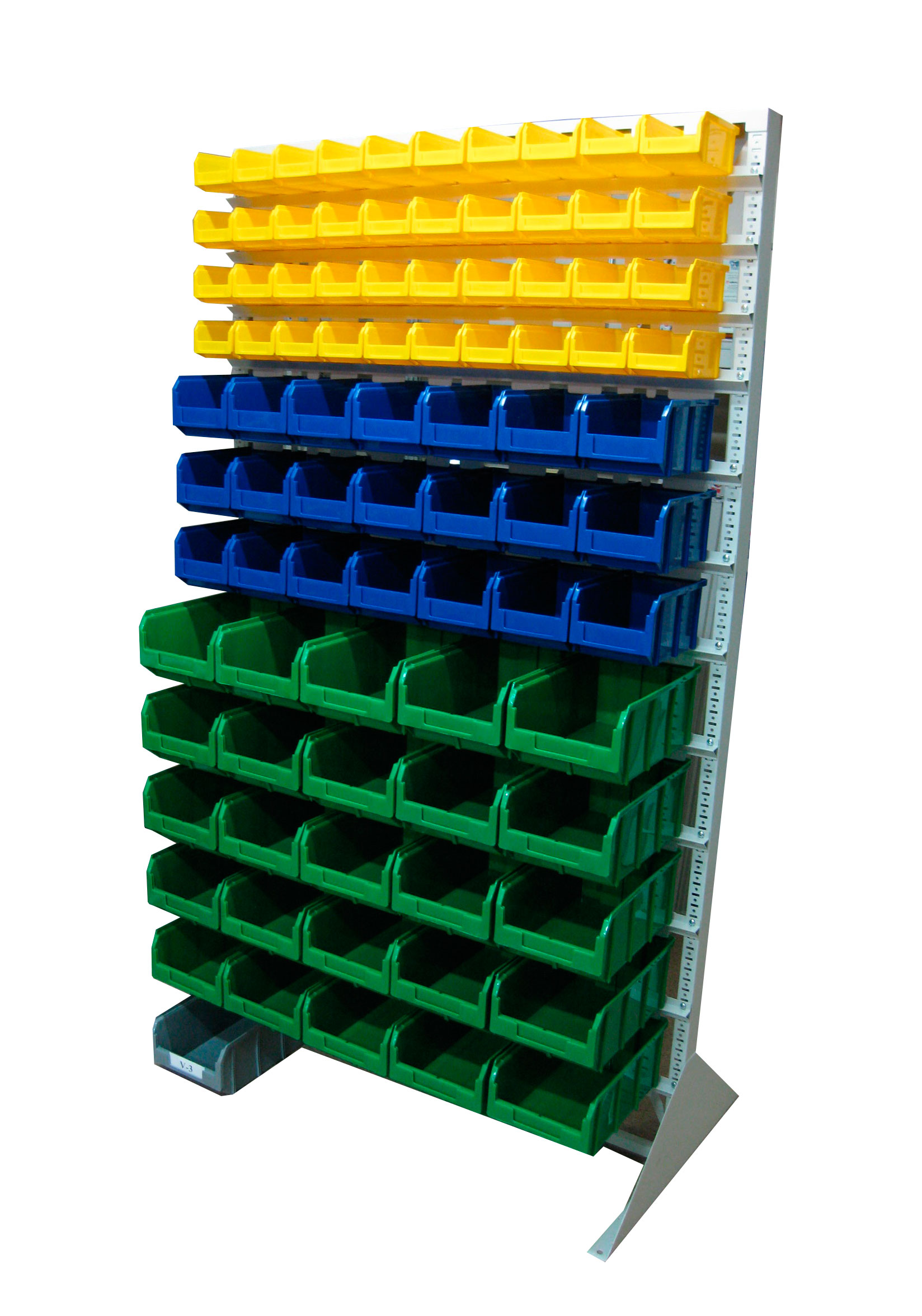 Стойка 1150х2000 Стелла-техник В1-04-03-05 односторонняя служит для эффективной организации рабочего пространства склада, магазина, гаража, мастерской. Используется для систематизации и хранения мелких подручных приспособлений и инструментов. Опоры стойки 1150х2000 имеют возможность крепления к полу, что обеспечивает высокую устойчивость всей конструкции. Стойка оснащена ящиками различной вместимости, в количестве 86 штук, в каждом из которых предусмотрен специальный кармашек для опознавательной карточки - это позволяет эффективно систематизировать помещенные туда инструменты и приспособления. Сборка данной конструкции не требует от пользователя каких-либо специальных знаний и умений. Стойка не займет много места в авто-слесарной мастерской, на складе или в торговом помещении. Комплектация: Стойка под пластиковые ящики 1150х2000мм., без опоры, серия К; Опора стойки односторонняя комплект (правая + левая + крепеж), серия К; Держатель для стойки 1150мм., серый, распределенная нагрузка до 40кг. на ряд, серия К - 12 шт.; Пластиковый ящик серии V-1, размер 172х102х75мм. - 40 шт.; Пластиковый ящик серии V-2, размер 234х149х120мм. - 21 шт.; Пластиковый ящик серии V-3, размер 341х207х143мм. - 25 шт.; Упаковка. Преимущества: Хороший визуальный обзор содержимого. Каждый ящик оснащен специальным кармашком, позволяющим вставить этикетку для индикации содержимого. Конструкция стойки позволяет легко извлекать нужный ящик и так же легко устанавливать его на место. Быстрая сборка. Высокая прочность. Габарит: 1150х330х2000мм., вес 49кг.