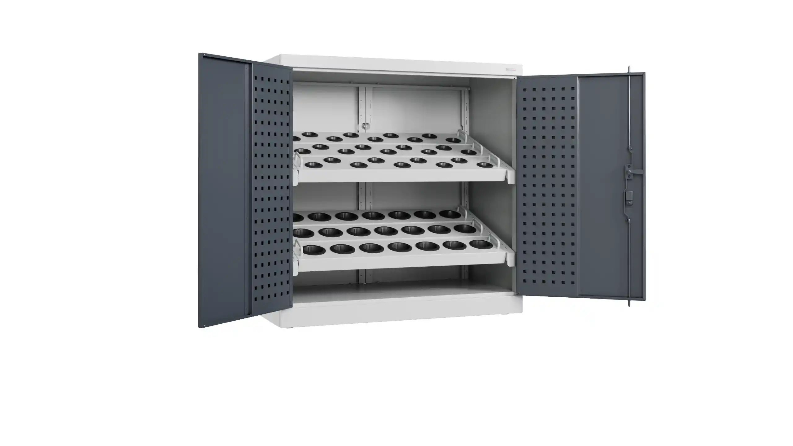 Шкаф антресольный инструментальный Fabrik тяжёлой серии представляет собой сборно-разборную конструкцию, предназначен для хранения оснастки, приспособлений и инструмента в мастерских, цехах и других производственных зонах. Шкаф изготовлен из листовой стали, имеет ригельный замок обеспечивающий надежное запирание дверей.