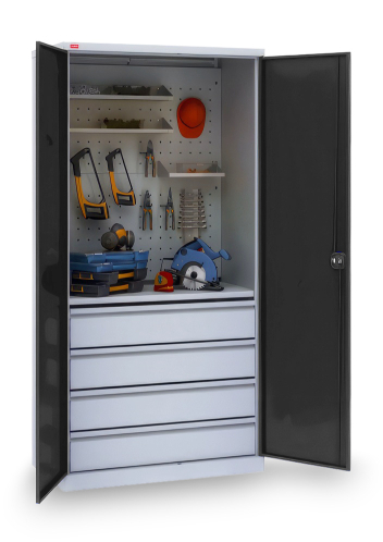 Односекционный инструментальный шкаф. Вариант возможной комплектации (инструменты на фото в комплектацию не входят)