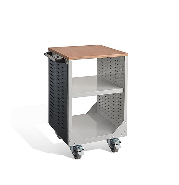 Боковые стенки представляют собой двойные перфорированные экраны. С внешней стороны тележки на них можно установить аксессуары к экранам — лотки, держатели инструмента и т.д. Между экранами установлена ВС полка. Максимальная нагрузка на полку — 200 кг.