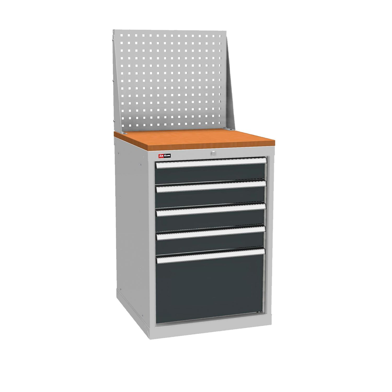 Тумбы окрашены эпоксидной порошковой краской, устойчивой к механическим воздействиям и агрессивным жидкостям: корпус и экран – серые RAL 7038; ящики и двери – антрацитовый серый RAL 7016.