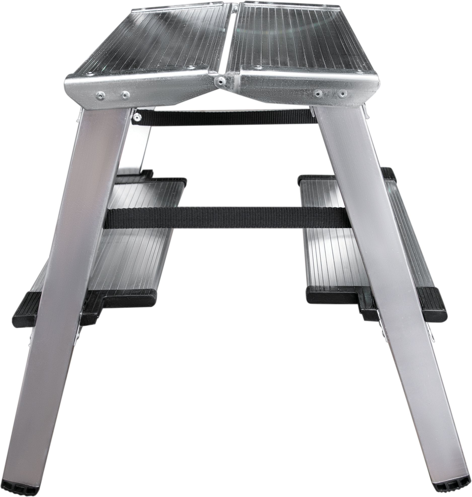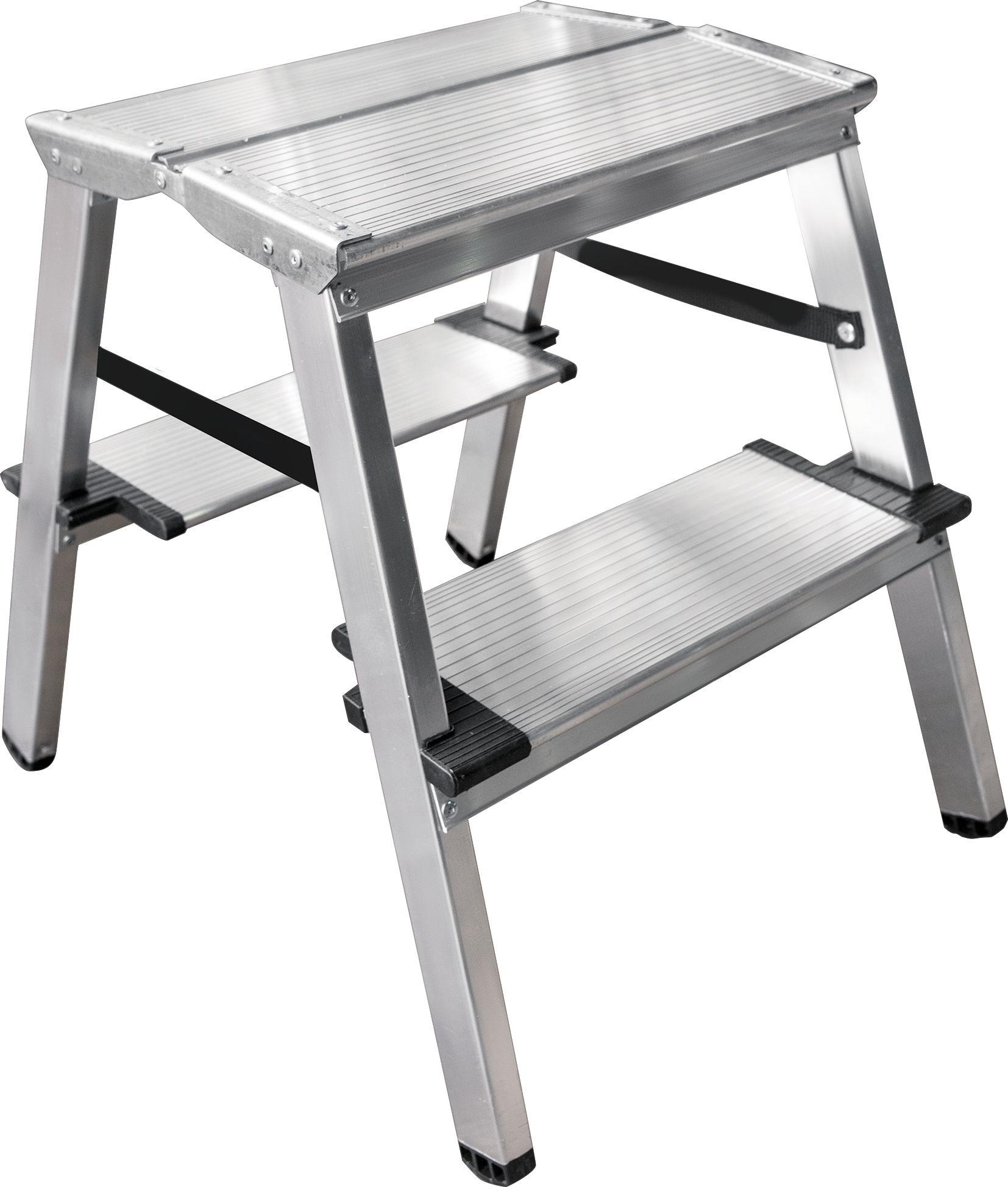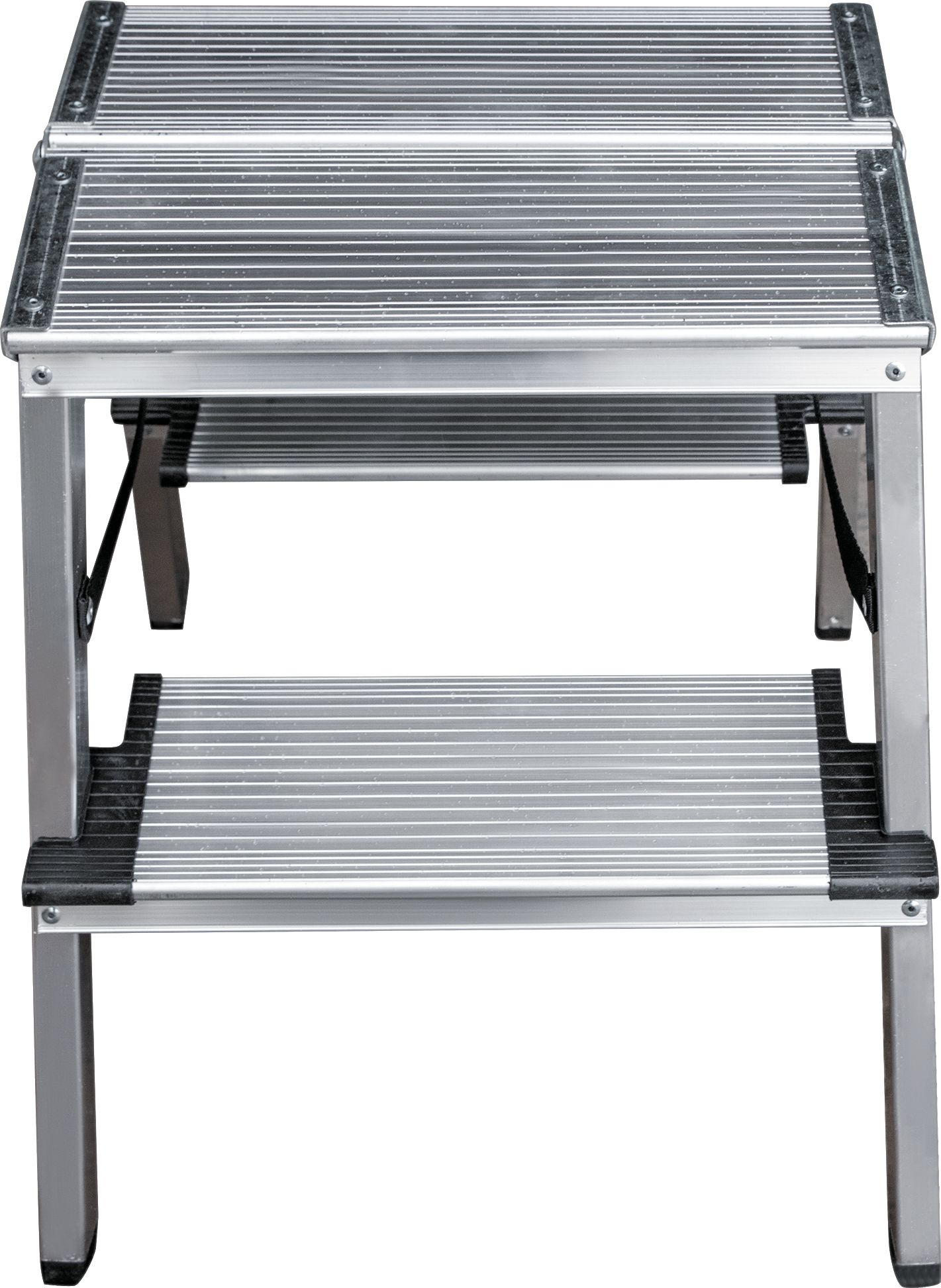 - Алюминиевая складная площадка350×260 мм из 2 ступеней. Увеличенный радиус работы.