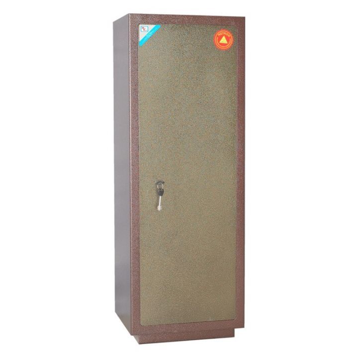 Сейф односекционный, оснащен двумя съемными полками. В двери установлен ключевой 8-ми сувальдный замок ЗАО «Про-Сам» г. Рязань или аналогичный замок другого производителя.