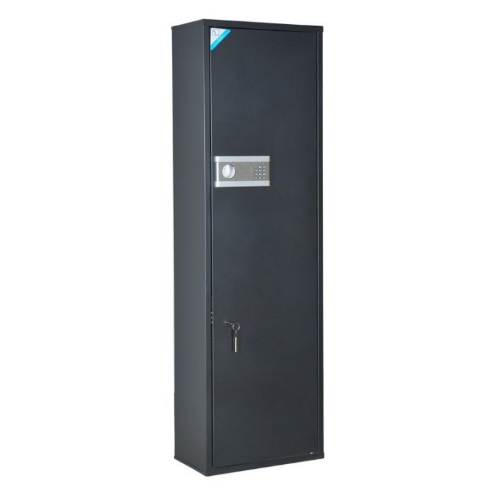 Шкаф оружейный ОШН-7Э на 5 стволов оснащен отделением под патроны. Ложементы — пластик. В дверь установлены 1 электронный замок и 1 ключевой 8-ми сувальдный замок ЗАО «Про-Сам» г. Рязань или аналогичный замок другого производителя.
