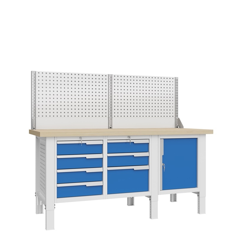 Рама верстака выполнена из холоднокатаной стали толщиной 2мм, модули - из стали 0,8мм.