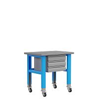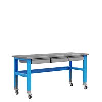 Рабочий стол имеет столешницу из влагостойкой фанеры размером 1500х700 мм, толщиной 27 мм и может регулироваться по высоте от 830-1080 мм