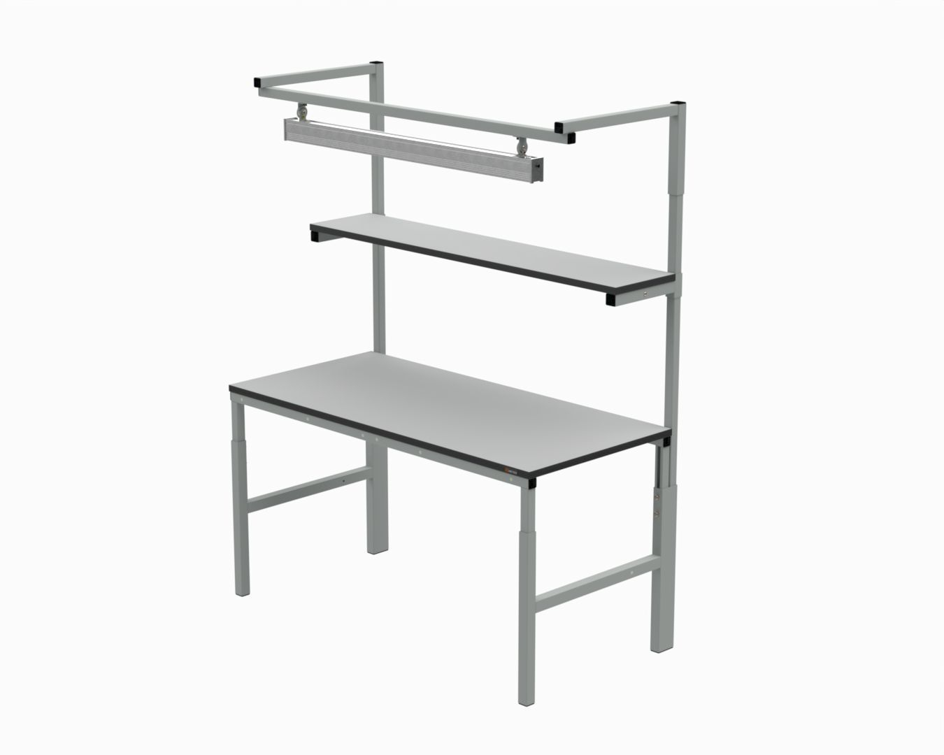 В комплект стола входит стол серии 41.Б, комплект задних стоек, верхняя полка шириной 300 мм, комплект крепления верхнего освещения и светодиодный светильник.