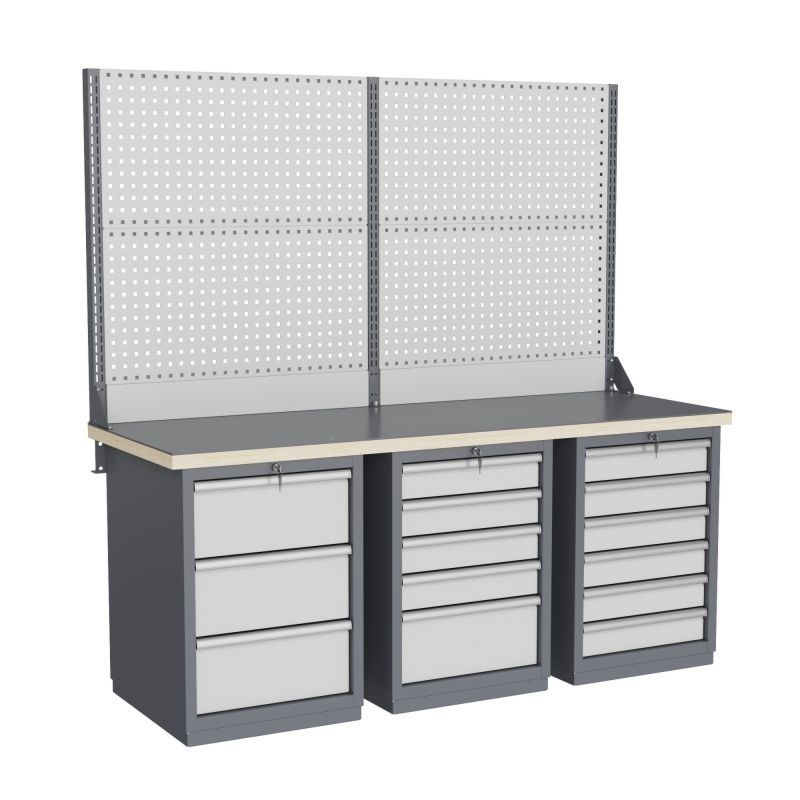 - широкий выбор различных тумб позволяет получить более 50 различных вариантов верстаков и рабочих столов под любые задачи;